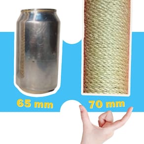 A estrutura tubular com o sisal possui 70 mm de diâmetro e a peça completa tem 60 cm de altura. Este arranhador é para você que deseja ter o benefício dessa peça para o enriquecimento ambiental do seu espaço, mas ainda não pensa em investir muito no processo de gatificação.
