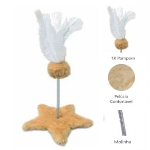 Arranhador Gato Estrela Mola Bolinha Pelucia Bege Brinquedo