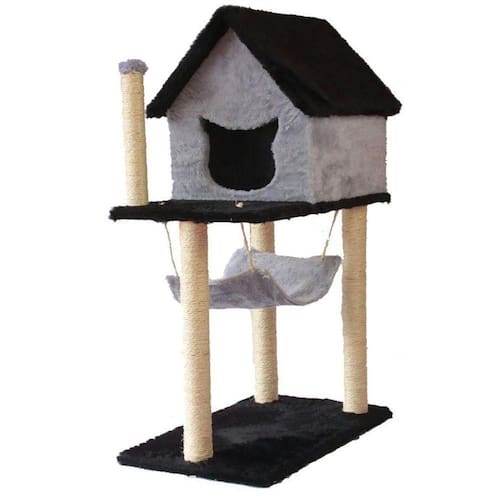 Arranhador casa com rede serve como uma forma natural para seu pet se divertir. Design que vai proporciona conforto aos gatos, revestido em Pelúcia de alta qualidade, base feita em madeira de compensado naval e sisal. Fabricado em pelúcia de alta qualidade e anti-alérgica para conforto do seu pet. Tamanhos 97cm de Altura 60cm de Comprimento Canos com 50cm Seu gatinho vai amar.
