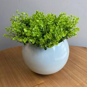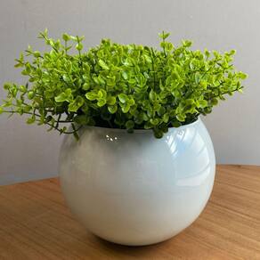Arranjo Centro de Mesa Vaso Branco Verdinho Artificial Completo