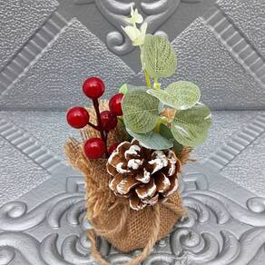 Material: folhagens artificiais, pinhas e cerejas decorativas
