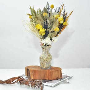 Todos os nossos arranjos e buquês são criados com flores naturais desidratadas artesanalmente. Por ser um processo manual, isso garante que cada arranjo seja único em sua composição.