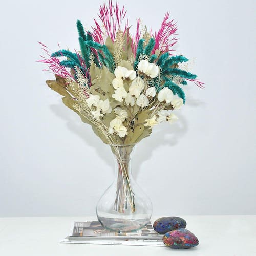 Todos os nossos arranjos e buquês são criados com flores naturais desidratadas artesanalmente. Por ser um processo manual, isso garante que cada arranjo seja único em sua composição.