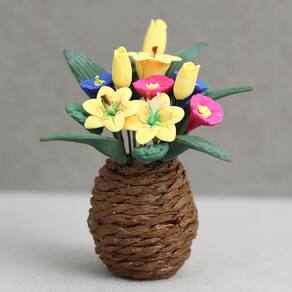 Tamanho: diâmetro inferior do vaso 1,5 cm, altura total 5,5 cm Material: vaso: tecido, flor: resina Peso: peso líquido 6,5 g Charmoso vaso de flores em miniatura: apresenta um arranjo colorido de lírios amarelos, tulipas e flores variadas em um vaso de tecido, adicionando detalhes realistas à casa de bonecas ou cenas em miniatura. Perfeito para casas de bonecas em escala 1:12: especialmente projetada para casas de bonecas em escala 1/12, esta decoração floral aprimora o interior ou o jardim de sua mini casa de teatro. Aviso de brinquedos não infantis: Não é adequado para crianças menores de 3 anos. Por favor, mantenha-se afastado de crianças pequenas para evitar possíveis riscos de asfixia. Ótimo para brincar de fingir: acessório ideal para brincadeiras criativas, trazendo realismo e charme a jardins de casas de bonecas, pátios ou cenas decorativas internas. Construção durável em resina e vaso de tecido: feita com flores de resina de alta qualidade e um vaso resistente em estilo tecido, esta miniatura foi projetada para uso duradouro em coleções.