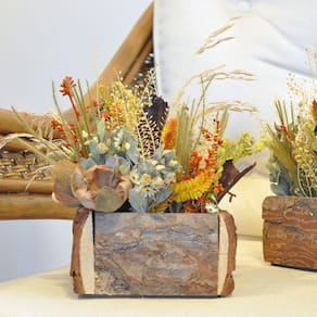 Todos os nossos arranjos e buquês são criados com flores naturais desidratadas artesanalmente. Por ser um processo manual, isso garante que cada arranjo seja único em sua composição.
