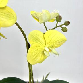 Arranjo De Orquídea Amarela Vaso Cinza 50cm Inigual Arranjo De Orquídea Branca Vaso Com Suporte Os arranjos com plantas artificiais trazem muita elegância e sofisticação ao ambiente São práticos e não precisam de manutenção diária com regas. Este arranjo de orquídeas amarelas ficará perfeito na sua decoração, trazendo vida e cor ao ambiente. E para ficar ainda mais perfeito escolhemos este lindo vaso cerâmico com pés em madeira para compor e harmonizar com o arranjo. Esse arranjo é exclusivo da Inigual Decor, criado por nós com muito carinho para que seu ambiente seja INIGUAL como você MEDIDAS: Vaso + arranjo: Altura aproximada: 50,0cm / Largura aproximada: 22,0cm / Profundidade aproximada: 13,0cm / Peso: 1.135g.Vaso Com pé: 16,5x13,5x13,5cm MATERIAL: O vaso decorativo é em cerâmica com pé em madeira a folhagem é artificial em toque real Modelo: arranjo de Orquídea Amarela Com Vaso Cinza Cor: cinza, amarelo e verde CONTEÚDO DA EMBALAGEM: 1 arranjo com 2 hastes de orquídeas, 1 Vaso , folhagem verde ATENÇÃOOBS. O vaso está incluso neste anúncio. Vem decorar, seja INIGUAL