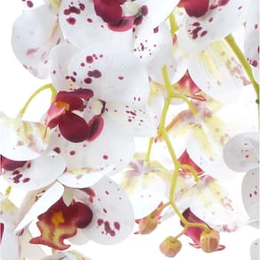 - Flores artificiais com galhos de fio aramado revestido com plástico, com 4 orquídeas de silicone brancas e vinho e folhas verdes