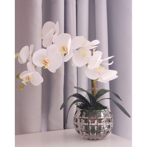 Arranjo de Orquídea Flores Artificial 1998 As flores artificiais para decoração são o que há de mais bonito no mercado, já que são feitas com materiais de grande qualidade e oferecem ao arranjo uma aparência elegante. Quartos, salas de estar e de jantar, cozinhas e home offices ganham um toque especial com a ajuda das flores artificiais para decoração, que são muito eficientes na tarefa de dar mais vida a qualquer ambiente. - Plantas de alto padrão:Flores artificiais. Material: Vaso de Flores permanente montado - Vidro igual a foto do anuncio. Complementos vaso e flores Flores em seda sintético, arame, cor verde alto padrão O Arranjo vai completo e montado. Basta abrir a caixa e pronto. - Nossos Arranjos são únicos e exclusivo para cada cliente, caso precise de mais unidades iguais favor entra em contato antes.Altura: 0.37 cmLargura: 0.30 cmComprimento: 0.30 cmPeso: 1500 g Marca: La Caza Store