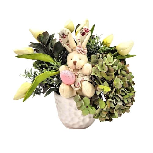 Arranjo De Páscoa Para Aparador Tulipa Coelho 27x27x23cm