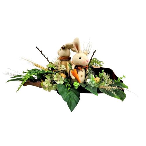 Arranjo De Páscoa Para Mesa Coelho Marrom Canoa 23x46x26cm