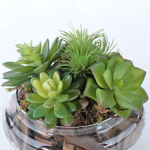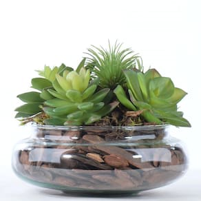 Características do Arranjo de Suculentas Artificiais em Vaso de Vidro Paola: