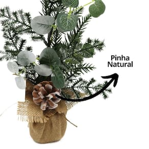 -01 Unidade Arranjo Enfeite de Mesa Natal Rústico Folhagens com Pinha Natural 37cm - Magizi