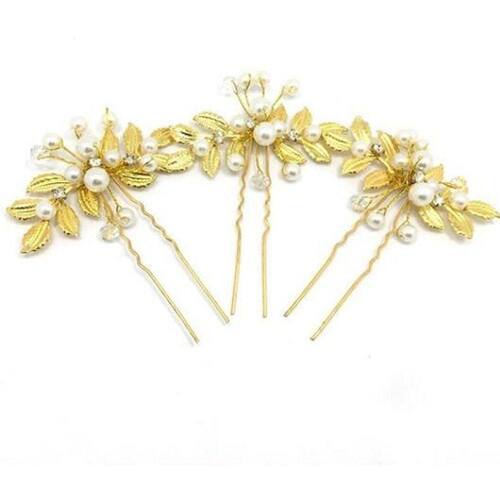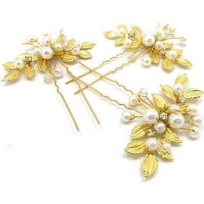 Arranjos dourados para cabelo com pérolas sintéticas e cristal. VALOR PARA 3 UNIDADES. Ideal para noivas, daminhas, madrinhas, debutantes, formaturas e festas em geral. Marca: De Castro Joias Ean: 7891517479167