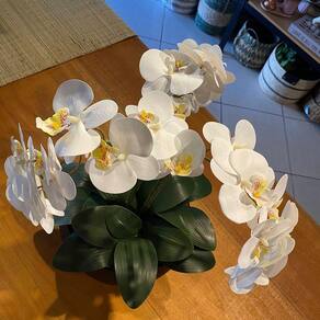 Arranjo Grande Centro de Mesa 3 Orquídeas Branca 3d Vaso Preto