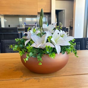 Arranjo permanente de Lírio em efeito hiper-realista com vaso bronze.