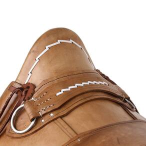Um Arreio da marca A Pantaneira modelo São José, utilizado em Muares e Cavalos, fabricado em couro nobre com detalhes em costuras reforçadas, tentos em couro nas laterais, assento em couro com tamanho livre de 18", travessão fixo, ferragens em aço inox, armação de ferro revestida em inervo, acabamento do suador com enchimento em capim e revestimento em couro com bordas em nylon costurado.