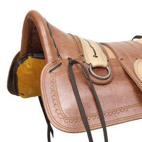 Arreio A Pantaneira modelo São José, utilizado em Muares e Cavalos, fabricado em couro nobre com detalhes em costuras reforçadas, tentos em nylon nas laterais, assento em couro com tamanho livre de 15", travessão fixo, ferragens em aço inox, armação de ferro revestida em inervo, acabamento do suador com enchimento em capim e revestimento em couro com bordas em nylon costurado.