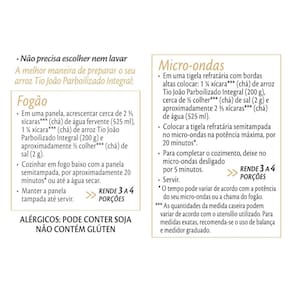 UMA PORÇÃO DE ARROZ TIO JOÃO CRU (50g OU DE XÍCARA) RENDE UMA PORÇÃO DE ARROZ COZIDO (CERCA DE 114,9g).