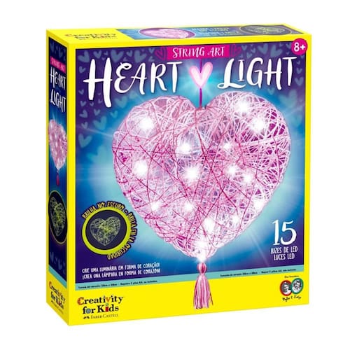 Ilumine a criatividade com o Arte com Cordas Luminária de Coração, da linha Creativity for Kids da Faber-Castell! Ideal para crianças a partir de 8 anos, este kit permite montar uma linda luminária em formato de coração usando a técnica de string art (arte com cordas). Uma atividade divertida e educativa que une arte, coordenação motora e design.