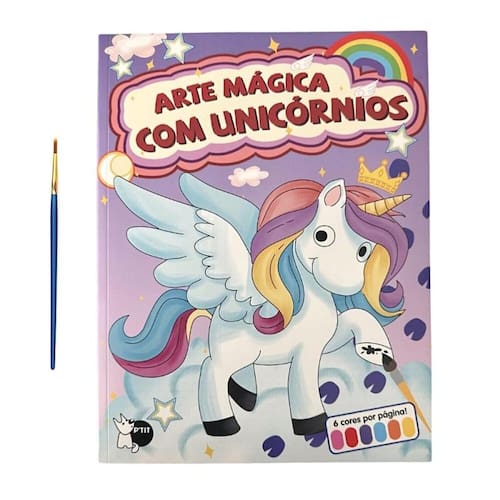 Os unicórnios são seres muito especiais, mas aqui falta algo... O que será? Isso mesmo, cores! Vamos pintar todos os desenhos? Com este livro, os pequenos vão poder colorir, pintar e desenhar muitos elementos fantásticos do mundo dos unicórnios. O melhor de tudo é que a tinta já vem em uma paleta na parte superior de cada página, não é demais? É só molhar um pouquinho o pincel na água e passá-lo por cima da tinta no papel e colorir para a mágica acontecer. Então, mãos à obra!