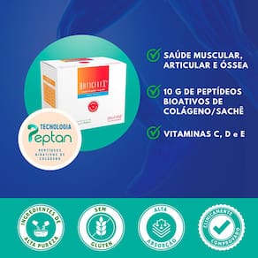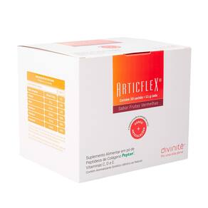 Amplie sua jornada em direção à longevidade saudável. Especialmente após os 35 anos, investir em maior aporte proteíco é essencial. Cada sachê contém 10g de Peptídeos de Colágeno Peptan, uma fonte premium de colágeno bioativo que promove a saúde e flexibilidade das articulações. Além disso, nossa fórmula é enriquecida com as vitaminas C, D e E, essenciais para fortalecer ossos e músculos. Cuide do seu bem-estar diário com o Articflex e tenha o tempo como seu aliado!