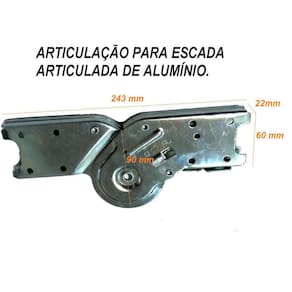 Articulação em aço para escadas articuladas em alumínio tamanhos 4x3, 4x4 E 4X5 degraus.Vendido unitariamente, sem instalação.DimensõesIndicado para escadas articuladas em alumínio 4x3 degraus e 4x4 degraus.Peso 0,9 kgInformações AdicionaisAtende a maioria das marcas de escadas articuladas em alumínio, nacionais e importadas.Suporta até 150 kg