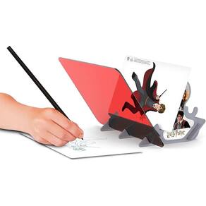 Um kit completo para te ensinar a desenhar, vem com peças plásticas para montar a base, lápis e papel. Você encaixa a cartela ou celular com a imagem do Harry Potter e pelo reflexo desenha no papel.
