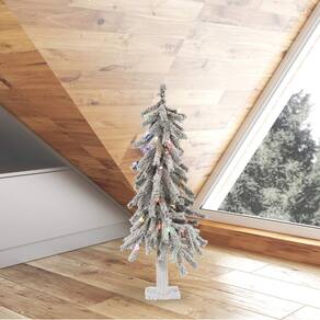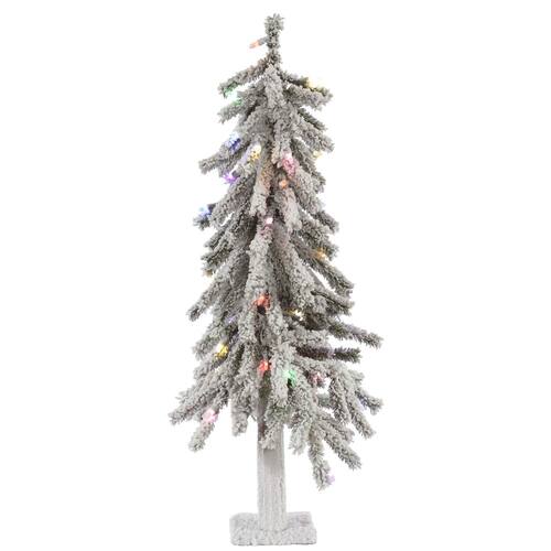 Vickerman Árvore de Natal artificial alpina flocada, luzes LED Dura-Lit multicoloridas - Árvore falsa coberta de neve - Decoração de casa interna sazonal - Porta-malas de madeira verdadeira