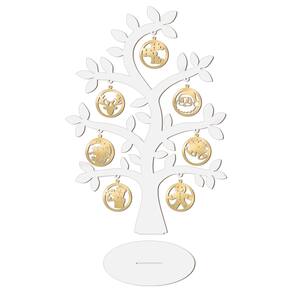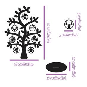 Material de ótima qualidade MDF revestido com papel resinado uma face de 3mm de espessura Resistência anti-risco, impermeável e anti-UV Tamanho da árvore: 28cm x 40cm Tamanho da base da árvore: 18cmx9,7cm Tamanho da bolinhas: 5,5cm
