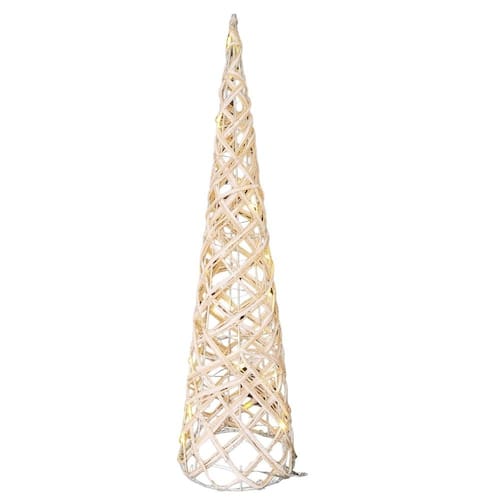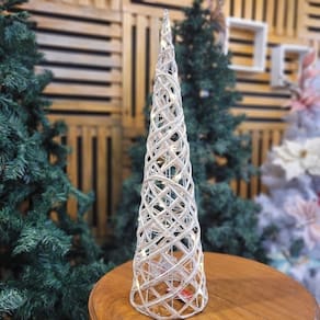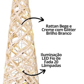 Árvore Cone Rattan Bege e Branco Iluminada LED 20 Lâmpadas