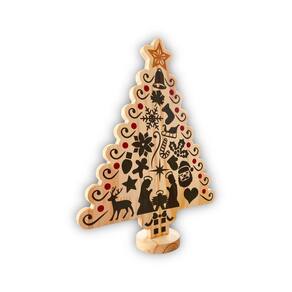- A árvore é feita de madeira de pinus, uma opção sustentável e durável.