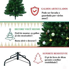 Árvore de natal grande verde canadense 2,10m 800 galhos Árvore de 800 galhos e 2,10 metros de altura - grande árvore de natal grande pinheiro canadense com base de ferro prática, pronta para uso, basta desdobrar os galhos, montar e decorar as árvores de natal são extremamente maleáveis e exigem apenas alguns minutos de seu tempo para ficar toda linda e decorada. Delicadas, permitem ajustes nas pontas dos galhos. Itens inclusos: -01 árvore de natal -01 base pé de ferro especificações - pronta para uso, basta desdobrar os galhos e decorar - formato de pinheiro canadense - cor verde tonalidade folha - galhos dobráveis - estrutura em tubo de metal galvanizado - altura montada 2,10m - diâmetro da base montada: aproximadamente 1,20m - galhos 800- diâmetro do pé: 40cm atenção pode ser lavada e guardada para usar por vários anos. do vendedor: 3 meses Marca: Não Informado