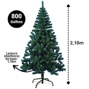 A Árvore De Natal Pinheiro Verde 800 Galhos 2,10m é ideal para decorar a casa, assim como lojas ou escritório