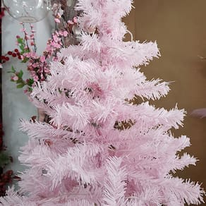 Material: Metal e PVC; Peso: 4.058Kg. Cores: Rosa; Quantidade de Galhos: 540 Pés: Metal Conteúdo da Embalagem: 1 Árvore de natal rosa.