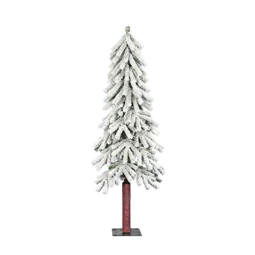 Vickerman Árvore de Natal artificial alpina flocada de 1,4 m x 61 cm - sem iluminação - árvore falsa coberta de neve - decoração de casa interna sazonal - tronco de madeira - pequena árvore decorativa