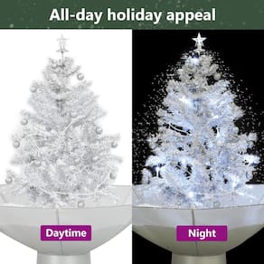 Semelhante a uma textura autêntica, esta árvore de Natal artificial é caracterizada por galhos realistas. Inclui uma melodia alegre, ornamentos festivos, luzes e neve falsa que cairá majestosamente da árvore quando acesa, criando a atmosfera certa para o festival. A bomba integrada transfere a neve da base e continua pulverizando-a de cima para baixo; a base incluída em forma de guarda-chuva coleta a neve e, com um controle, você controla a taxa de queda de neve, de uma camada macia a um alegre turbilhão de branco, para que você possa passar o Natal inteiro, mesmo o inverno inteiro, observando a neve caindo e cobrindo os galhos. Além disso, sendo leve e durável, a árvore de Natal pode ser usada todos os anos, o que a torna uma escolha muito econômica em comparação com uma árvore real. A árvore de Natal é fácil de montar, pois possui um sistema de plug-in simples