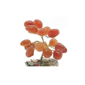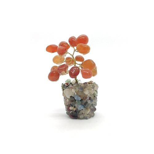 Árvore de Pedra Ágata Cornalina com Base Mix de Cristais - Altura 9 cm Árvore de Pedra Ágata Cornalina com Base Mix de Cristais - Comprimento 5 x Largura 5 x Altura 9 cm