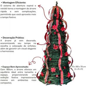 Árvore Decorativa De Natal Magizi Retrátil Barcelona 180cm