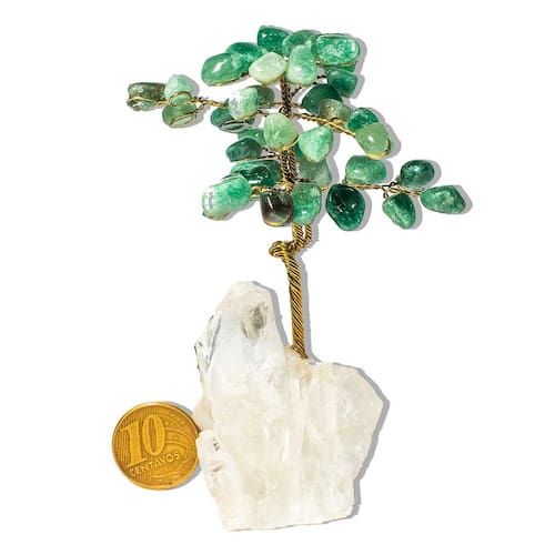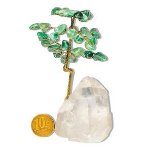 Árvores Decorativas artesanais feitas com quartzo verde natural rolado e base de drusa de cristal de garimpo. Cada árvore é produzida manualmente com galhos de arame torcido, acabamento em resina e pedras coladas uma a uma, garantindo um visual único e delicado. Ideal para revenda, lojas de presentes, artesanato ou para quem deseja decorar ambientes com peças diferenciadas feitas com minerais naturais do Brasil. Especificações do Produto: