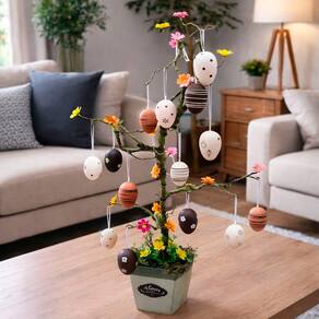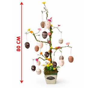 Encante sua decoração de Páscoa com a Árvore Osterbaum Decorativa de 80cm. Inspirada na tradição europeia, ela traz galhos ornamentados com ovos coloridos, cenouras e coelhinho, criando um visual alegre e sofisticado para ambientes internos