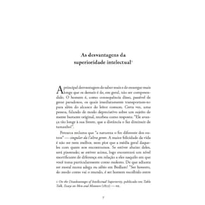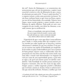 \"A maior felicidade da vida é não ser nem melhor, nem pior que a média geral daqueles com quem nos encontramos. Se estiver abaixo deles, será pisoteado; se estiver acima, logo encontrará um nível mortificante de diferença em relação a eles []. Falamos outra língua, temos noções próprias e somos tratados como se fôssemos de espécie diferente. Nada pode ser mais constrangedor do que invadir, com ideias tão distantes, a manada comum []. A ignorância do que o outro quer dizer é causa suficiente para o medo, e o medo produz ódio: daí a suspeita e o rancor nutridos por todos aqueles que se lançaram a maiores refinamentos e sabedoria do que seus vizinhos\". Neste livro, foram reunidos alguns dos melhores ensaios de William Hazlitt, que tratam de temas como a vida intelectual, a educação clássica e a natureza do bom senso.