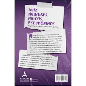 DUAS MULHERES. MUITOS PSEUDÔNIMOS. Meg Williams. Maggie Littleton. Melody Wilde. Nomes diferentes para a mesma pessoa, a depender da cidade, a depender do trabalho. Ela é uma vigarista que apaga a si mesma para se tornar quem quer que você deseje. Uma estudante universitária. Uma coach de vida pessoal. Uma corretora imobiliária. Nada a respeito dela é real. Ela se aproxima de você de forma sorrateira e diz exatamente o que você deseja ouvir. E, quando terminar, é provável que você tenha perdido tudo. Kat Roberts esperou dez anos pelo retorno da mulher que arruinou sua vida. Agora que ela retornou, Kat está determinada a expô-la. Mas conforme as duas mulheres se aproximam, as suposições de Kat começam a desmoronar, e ela se pergunta quem é o verdadeiro alvo de Meg. Marca: ALTA NOVEL