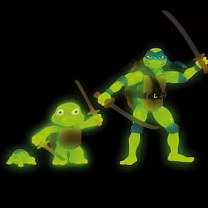 Quando as Tartarugas caem no esgoto e são encharcadas com um lodo misterioso, elas se transformam em crescentes e brilhantes Tartarugas Ninja! Veja a evolução de sua Tartaruga Ninja favorita! Todas as 3 Tartarugas neste pacote vêm com um toque especial - à noite elas se iluminam e brilham no escuro, um efeito colateral do lodo mutagênico! Alem disso, o conjunto vem embalado em uma caixa com um cenário ilustrado altamente detalhado do dojo de treinamento das Tartarugas!