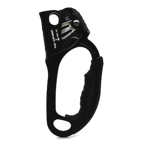Blocante para progressão em corda, confeccionado em chapa de alumínio de alta resistência, com tratamento anodizado, dotado de sistema de engate rápido e empunhadura ergonômica, possui espaço para fixação de mosquetão para fixação do estribo, sistema de bloqueio anti-derrapante.