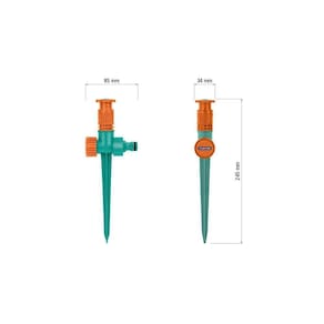 - O aspersor é conectado em mangueiras de 1/2, 5/8 e 3/4 através de sistema de engate rápido.