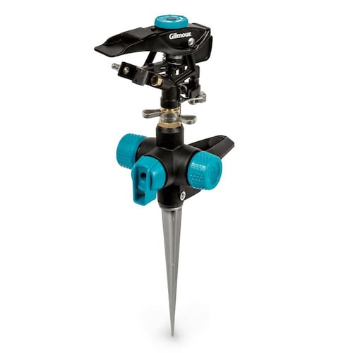 Aspersor de água circular pesado Gilmour com base de espigão, cabeça de aspersor giratória com padrão de pulverização ajustável, aspersor de gramado com cobertura de 5800 pés quadrados