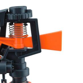 Botão que ajuste o defletor para controlar a distância do jato de água; Disco defletor que controla a distância; Aleta que impede o jato de água ir para trás e eliminar desperdícios de jatos laterais; Pino difusor que permite jatos intermitentes; Duas bandas de ajuste para controlar a áreado raio de irrigação a ser coberta; Trava para controlar cobertura; Caps para continuação de rede; Ean: 7898655720212
