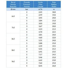 - sua Vazão vai 4,59 a 7,17 m/h - 4.590 a 7.170 litros/hora