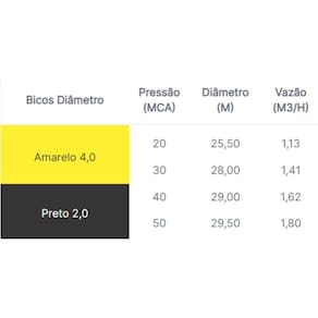 Pressão de : para informações dobre pressão e vazão consultar a tabela nas imagens do produto.