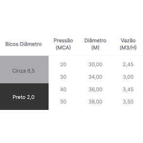 Pressão de : para informações dobre pressão e vazão consultar a tabela nas imagens do produto.